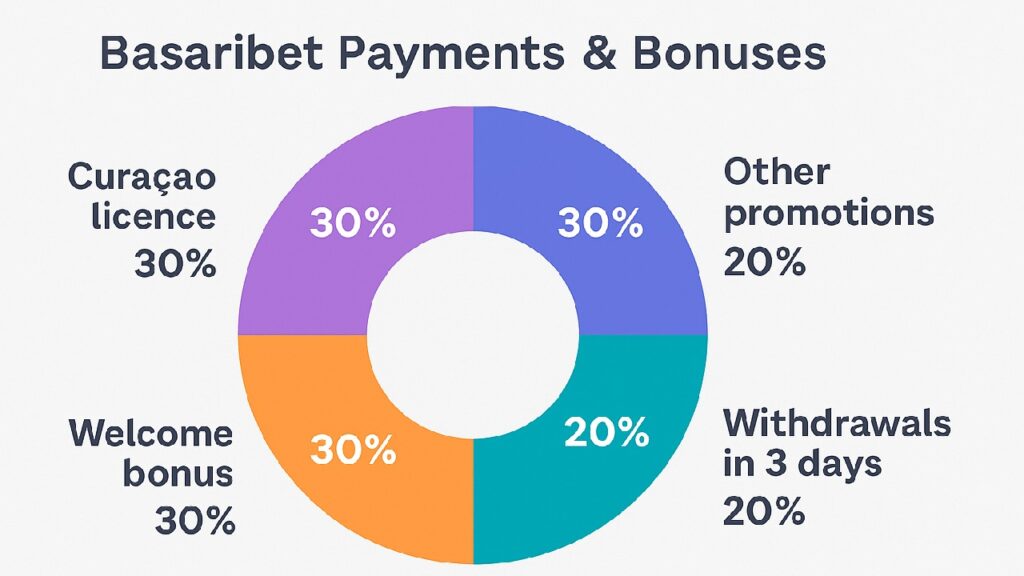 Basaribet maintains structured systems across payments, promotions, and licensing. With deposits from ₺25, withdrawals under three days, bonuses, and Curaçao oversight, the platform combines reliable financial processing with regulatory security.