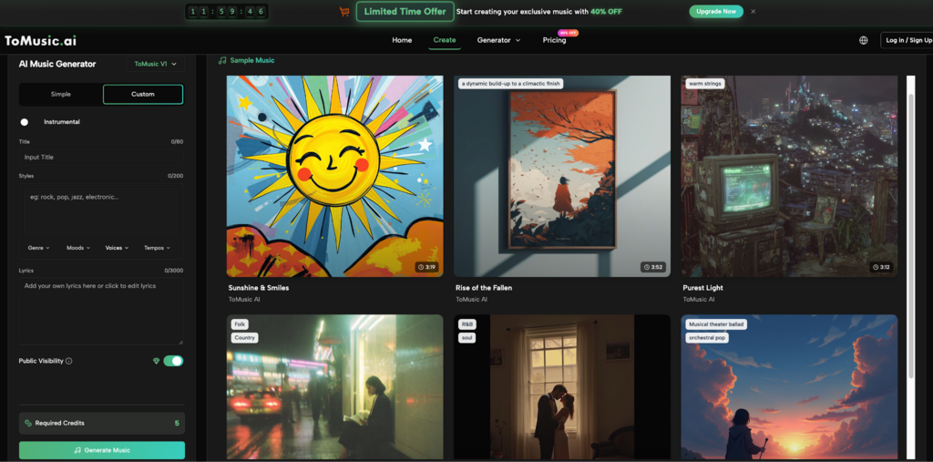 The strongest part of ToMusic is not a single dramatic feature. It is the way the product seems to organize user intent. The Simple mode gives beginners a low-pressure way to start. The Custom mode gives more prepared users room to guide lyrics, style, instrumental choices, and creative direction. The public music page also describes multiple AI models, including different strengths around vocal expression, harmonies, extended composition, and faster generation.