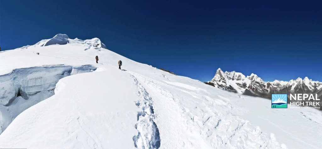 Climb starts in the dark. The headlamp light makes a small circle on the snow. You walk slowly. Rope attached. Crampons cut ice. Step by step. Sometimes steep. Sometime flat. Then the final headwall comes, steep and demanding. But when you climb it, the summit comes close. And then suddenly you stand on top. View blow your mind. Everest, Lhotse, and Ama Dablam all look near. You feel the sky touching your head. This moment is priceless.